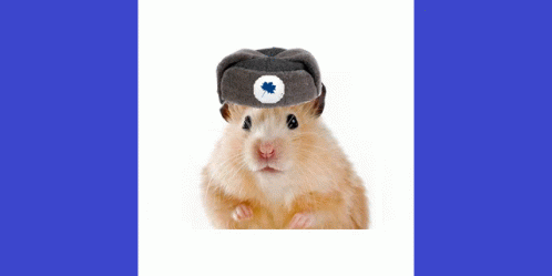 Paglalarawan ng Content: a small hamster wearing a hat with a blue leaf on it