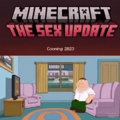 - Paglalarawan ng Content: peter griffin is sitting on a couch in a living room with the words minecraft the sex update coming in 2023