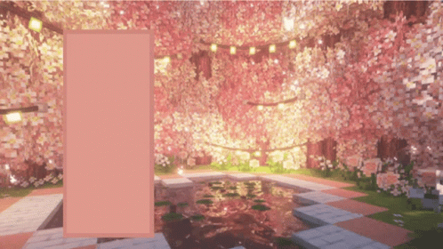 Paglalarawan ng Content: a pink rectangle is in the middle of a cherry blossom forest