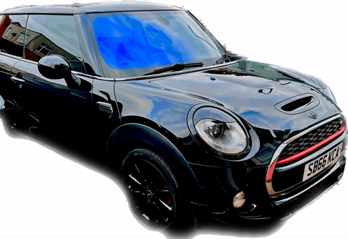 Paglalarawan ng Content: a black mini cooper with a license plate that says sb66kz