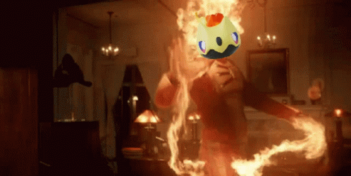 Paglalarawan ng Content: a person is surrounded by flames and a ball with a heart on it