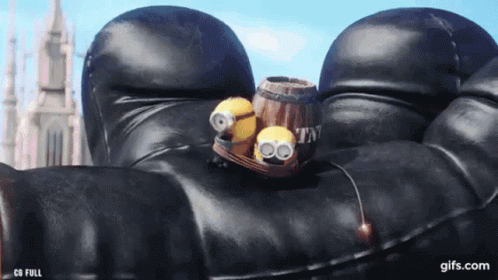 Paglalarawan ng Content: two minions are sitting on top of a black leather couch
