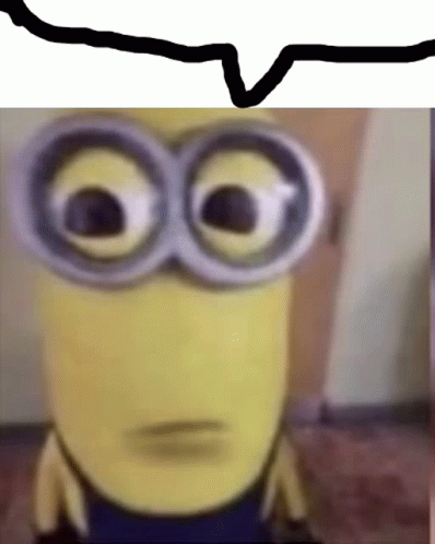 Paglalarawan ng Content: a close up of a minion with big eyes and a speech bubble above it