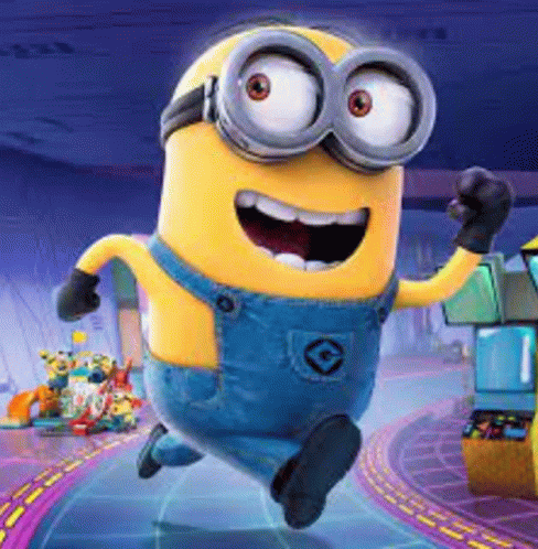 Paglalarawan ng Content: a minion wearing goggles and overalls is jumping in the air in an arcade .