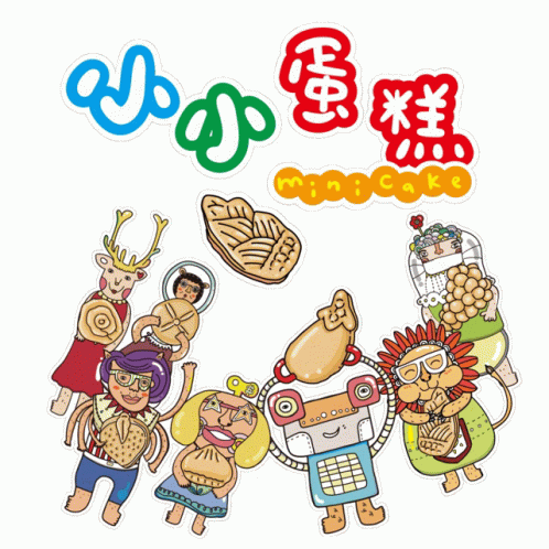 Paglalarawan ng Content: a cartoon drawing of a group of people with the words mini cake on the bottom