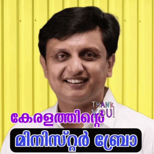 Paglalarawan ng Content: a man in a white shirt is smiling in front of a yellow wall with the words thank you on it