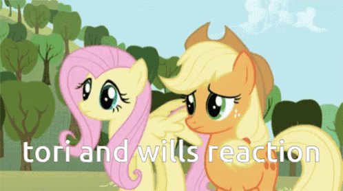 Paglalarawan ng Content: a cartoon of two ponies with the words " tori and wills reaction " on the bottom