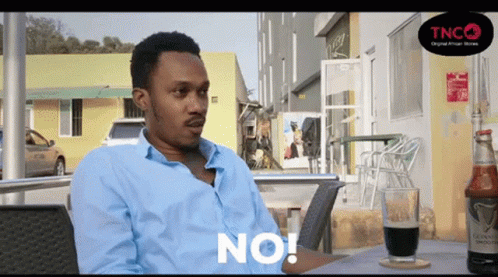 Paglalarawan ng Content: a man sits at a table with a bottle of guinness on it and says no