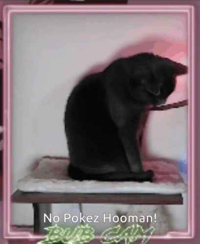 Paglalarawan ng Content: a picture of a black cat with the words " no pokez hooman " below it
