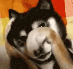 Paglalarawan ng Content: a black and white dog covering its face with its paws .
