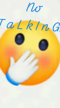 Paglalarawan ng Content: a smiley face with a hand covering its mouth and the words " no talking " written below it