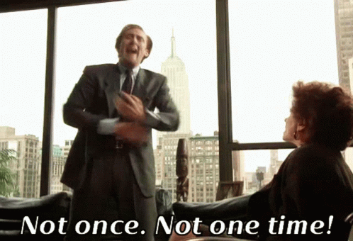 - Paglalarawan ng Content: a man in a suit and tie is talking to a woman who is sitting on a couch with the words not once not one time