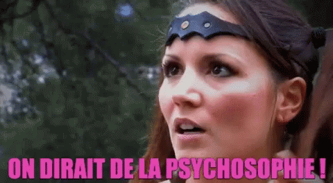 Paglalarawan ng Content: a woman with a headband on her head and the words `` on dirait de la psychosophie '' written in pink .
