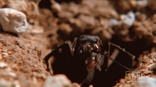 Paglalarawan ng Content: a spider is crawling out of a hole in the ground