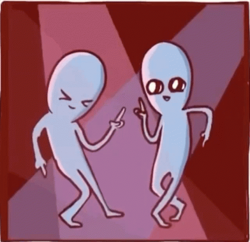 Paglalarawan ng Content: a cartoon drawing of two aliens dancing