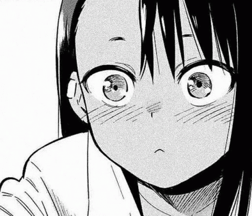 Paglalarawan ng Content: a black and white drawing of a girl with big eyes and a surprised look on her face .
