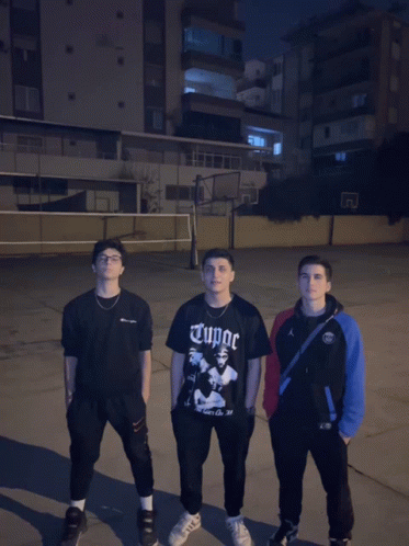 Paglalarawan ng Content: a man wearing a tupac shirt is standing with two other men