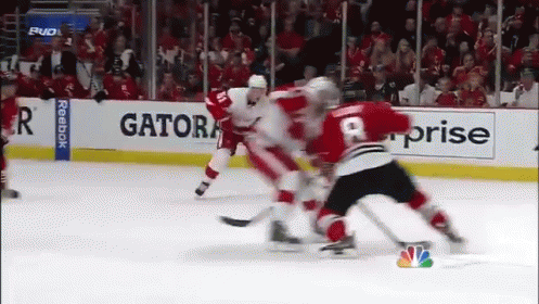 Paglalarawan ng Content: a hockey game is being played in front of a banner for gatorade