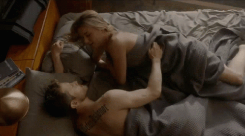 Paglalarawan ng Content: a man and a woman are laying on a bed and the man has a tattoo on his arm that says ' conscient '