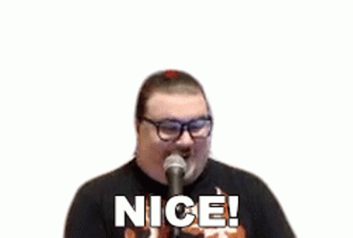 Paglalarawan ng Content: a man wearing glasses is holding a microphone and saying `` nice '' .