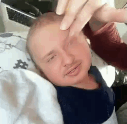 Paglalarawan ng Content: a person is touching a man 's forehead with their hand .