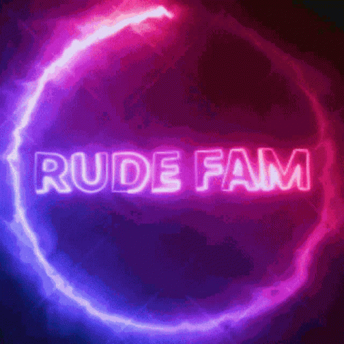 Paglalarawan ng Content: a neon sign that says " rude fam " in a purple circle