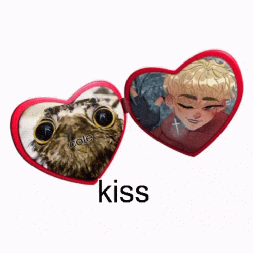 Paglalarawan ng Content: a picture of an owl and a picture of a boy with the word kiss underneath