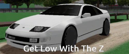 Paglalarawan ng Content: a white car with the words " get low with the z " on it