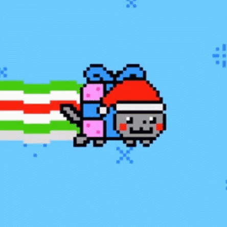 Paglalarawan ng Content: a pixel art of a cat wearing a santa hat and carrying a gift box