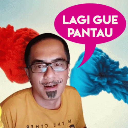 Paglalarawan ng Content: a man with glasses and a mustache says lagi gue pantau in a pink speech bubble