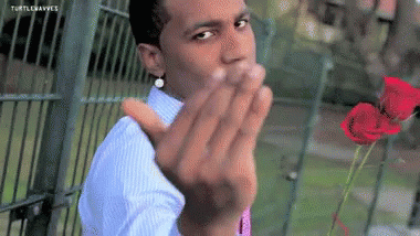 Paglalarawan ng Content: a man blowing a kiss with a rose in the background