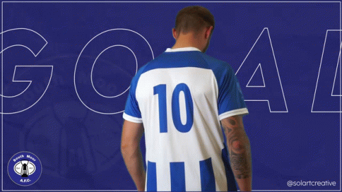 Paglalarawan ng Content: a man in a blue and white jersey with the number 10 on the back