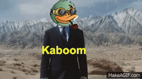 Paglalarawan ng Content: a man in a suit smoking a pipe with the word kaboom written in yellow