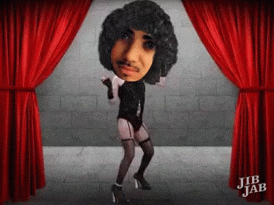 Paglalarawan ng Content: a cartoon of a man dancing in front of a red curtain with jib jab written on it