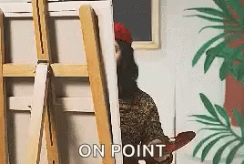 Paglalarawan ng Content: a woman is painting a picture on an easel while wearing a red hat .