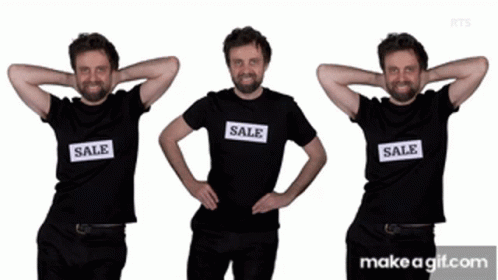 Paglalarawan ng Content: a man wearing a black shirt that says sale on it