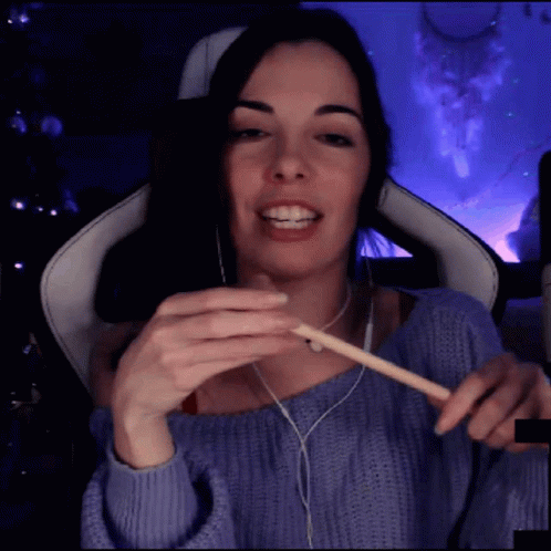 Paglalarawan ng Content: a woman in a blue sweater is holding a stick