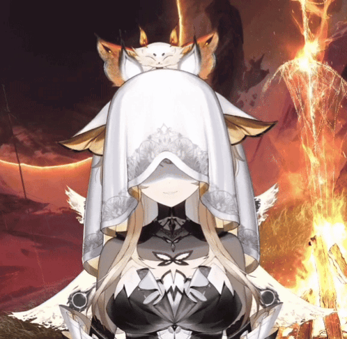 Paglalarawan ng Content: a girl with a white veil on her head has a cat on her head
