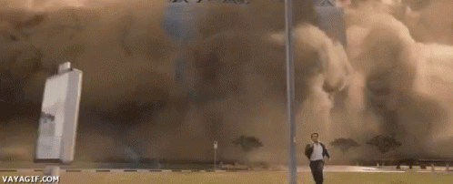 Paglalarawan ng Content: a man is running from a tornado in a field