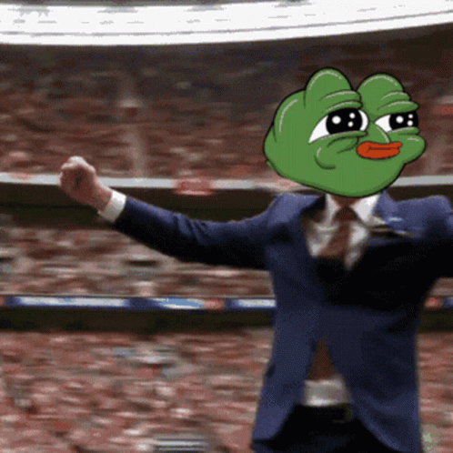 Paglalarawan ng Content: a man in a suit with a green frog head