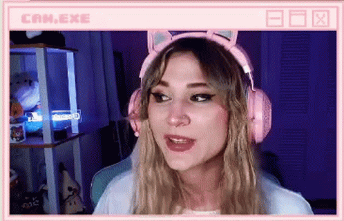 Paglalarawan ng Content: a woman wearing pink cat ears headphones is sitting in front of a computer monitor .