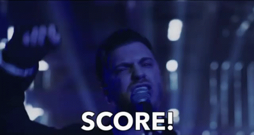 Paglalarawan ng Content: a man in a suit and tie is singing into a microphone and the word score is visible behind him