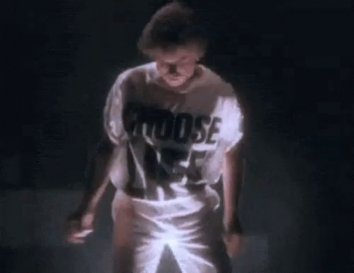 Paglalarawan ng Content: a man in a moose t-shirt is standing in the dark .
