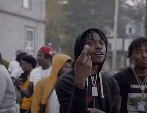 Paglalarawan ng Content: a man in a black hoodie is giving the middle finger in a crowd