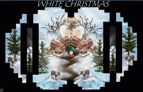 Paglalarawan ng Content: a poster for white christmas shows a gingerbread village
