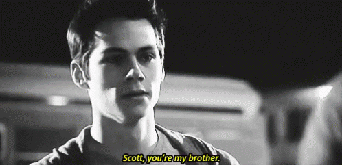 Paglalarawan ng Content: a black and white photo of a young man saying `` scott , you 're my brother . ''