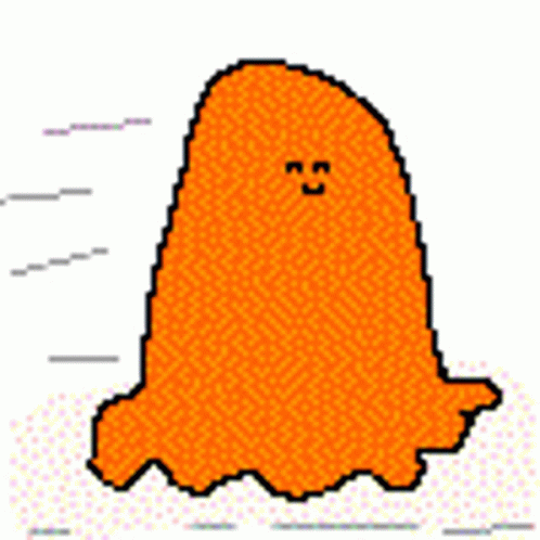 Paglalarawan ng Content: a pixel art drawing of an orange ghost with a smiley face