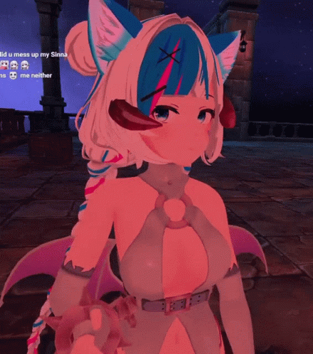 Paglalarawan ng Content: a girl with a cat ear is standing in front of a sign that says " did u mess up my sinna "