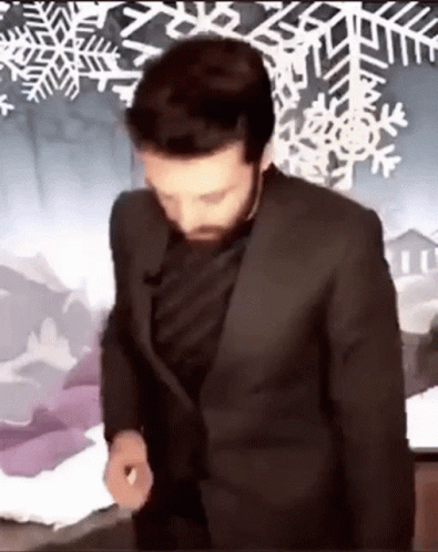 Paglalarawan ng Content: a man in a black suit is standing in front of a snowflake decoration .