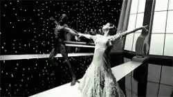 Paglalarawan ng Content: a black and white photo of a man and a woman dancing .
